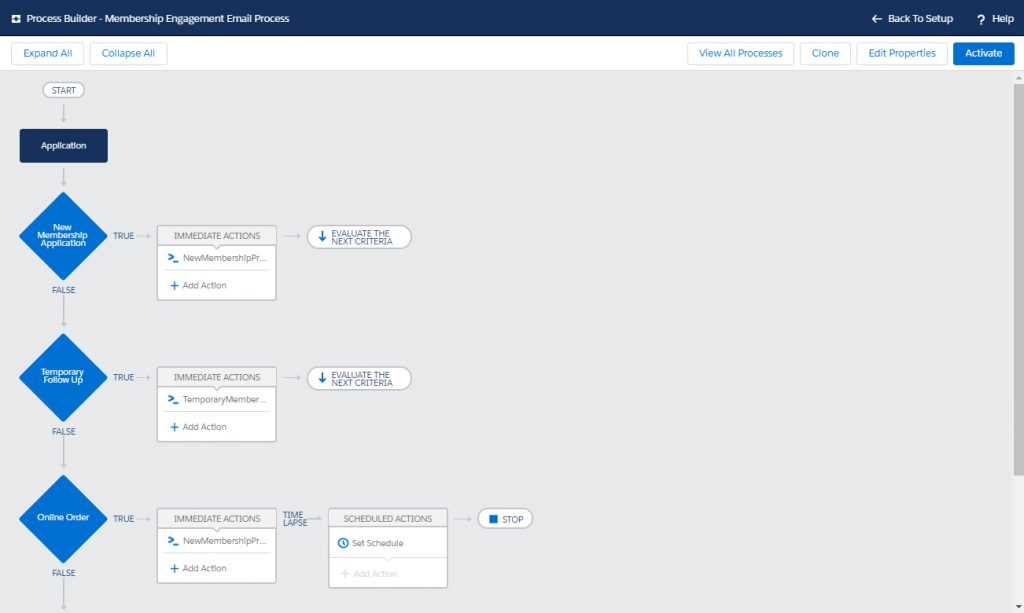 - Send an email – Engaging your members is becoming increasingly more important. Perhaps you want to send an email about getting a personal trainer after a member has been active for a few weeks. You can create a process builder to send a prebuilt email template (that fills in relevant member info like name etc) to members after they’ve been a member for two weeks.